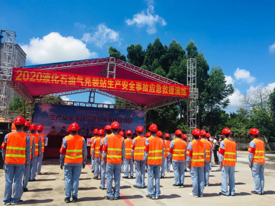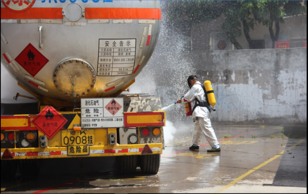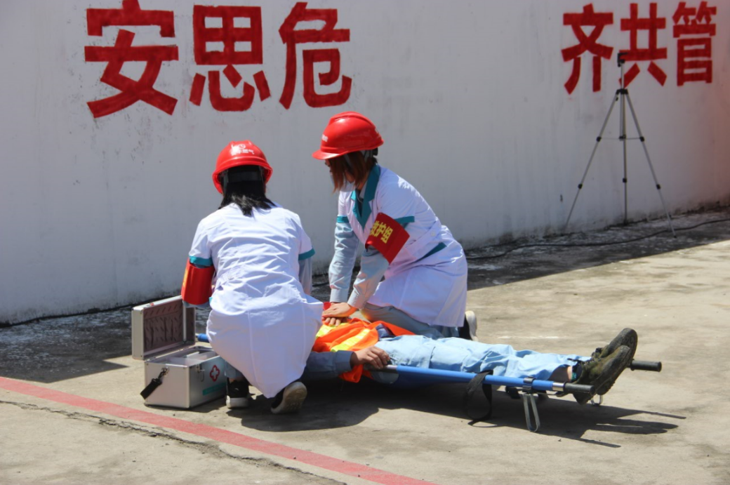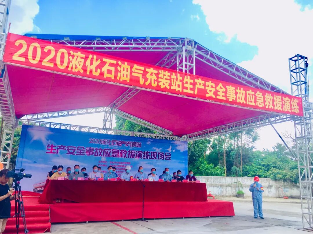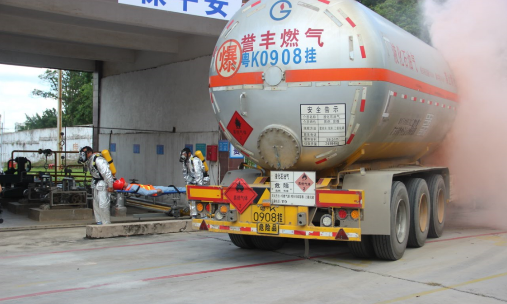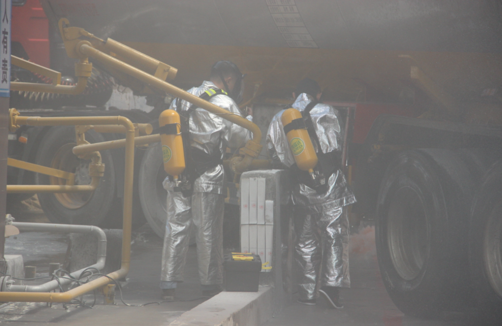 祝贺誉丰集团广东片区生产安全事故演练成功举办来源:誉丰能源网 图:演练开始前的准备 图:门卫拉响报警器,设立警戒区域,负责事故现场的警戒保卫 图:马上成立应急救援临时指挥部,迅速召开抢险现场会议,展开抢险救援工作 图:医疗救护组成员佩戴空气呼吸器、拿着医疗担架将伤员抬出安全通风地方抢救 图:医疗救护组成员将伤员进行人工呼吸,实施胸外心脏按压等动作施救 图:抢险救灾组成员迅速启动消防水泵,用消防水枪冷却槽车罐体,并用灭火器灭火 图:抢险救灾组成员佩戴空气呼吸器、穿着防化服在水枪的掩护下进入事故现场查漏、堵漏 图:善后工作组成员用可燃气体监测仪及抽取现场空气化验,空气中成份指标达到安全要求,抢险救援成功 |